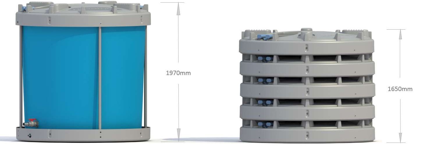 Tank erected Height and the maximum of 5 tanks stacked for storage