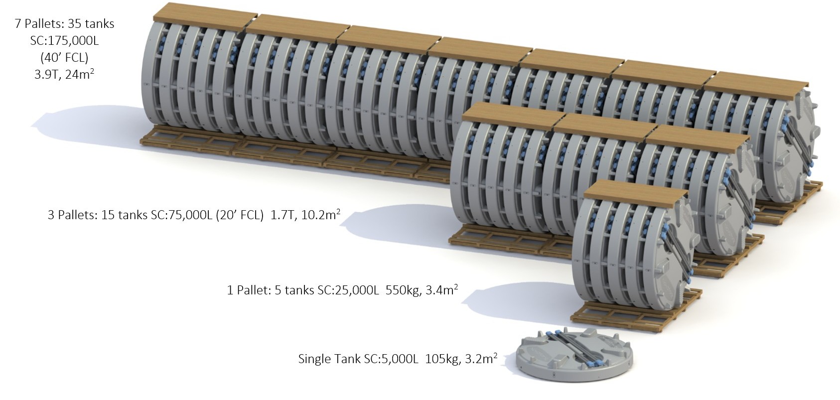- Pallet weight: 550kg (5 Tanks)